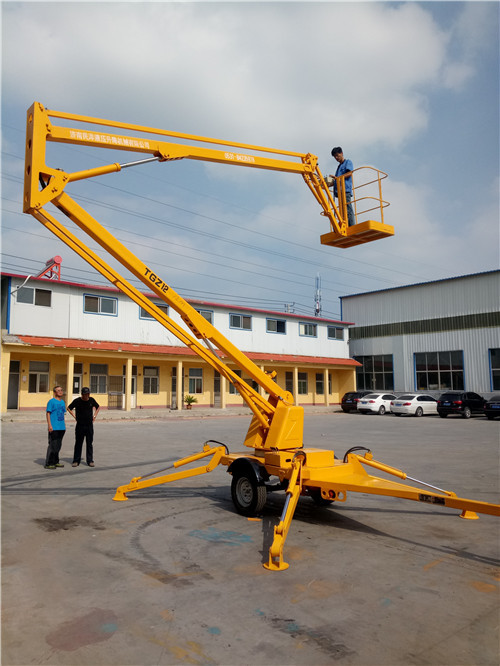 四川客戶來驗(yàn)收的這臺拖車折臂式液壓升降平臺,升高14米,載重260公斤,最大延伸工作距離2-8米,它的動力電源可采用柴油機(jī),電瓶,及汽油機(jī).