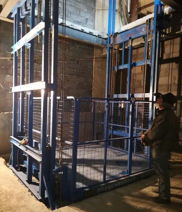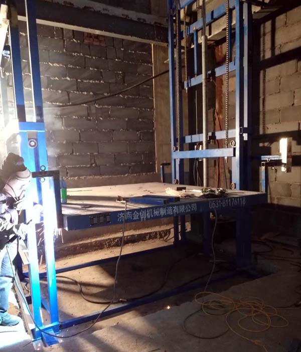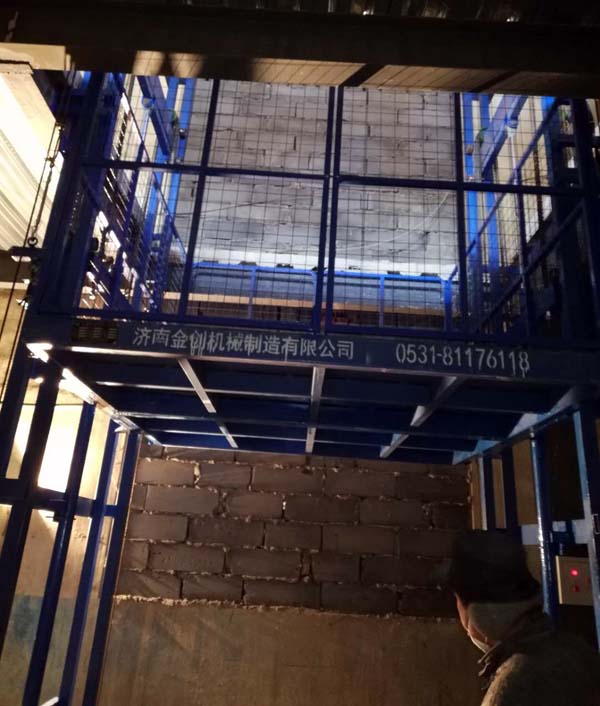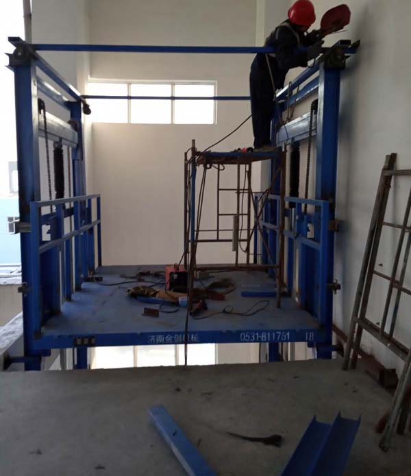液壓升降貨梯生產(chǎn)制造廠家-濟南金創(chuàng)機械制造有限公司,為威?蛻舳ㄗ龅纳13米,載重5噸的導(dǎo)軌鏈條式液壓升降貨梯,嚴(yán)寒天氣下,經(jīng)過安裝師傅加班加點的努力,昨天下午通過了客戶方的驗收工作。