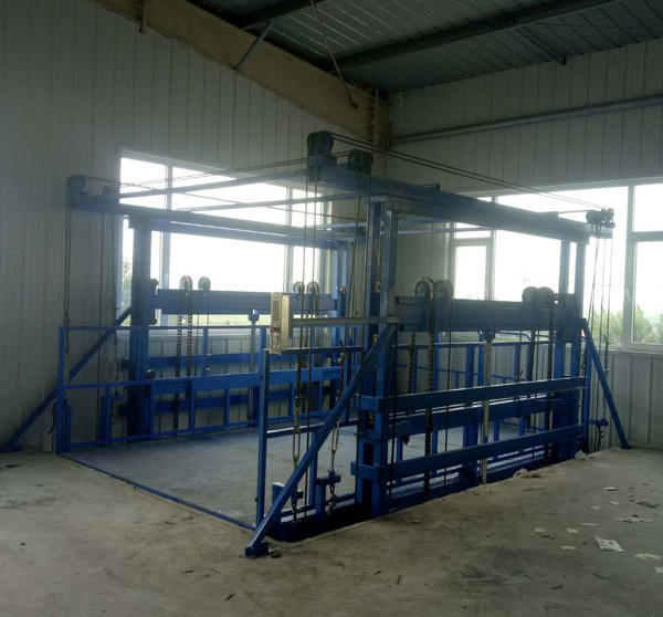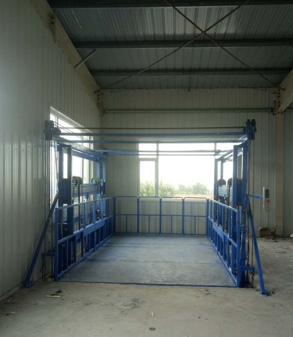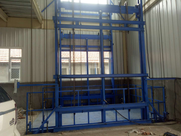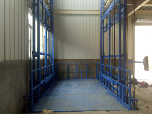 液壓升降平臺制造廠家-濟南金創升降機械,生產的雙體導軌鏈條式液壓升降平臺在河北保定安裝完成,日前已經投入使用中。