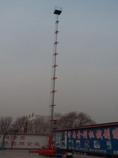 2、整機由平臺、伸縮油缸、單梯式或雙梯式防轉機構、底盤油箱、支腿、行走輪等組成。